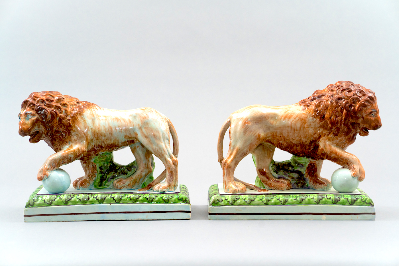 WHY WE LOVE IT: The lions are a pair yet each has a different look almost as if they are reacting to one another.